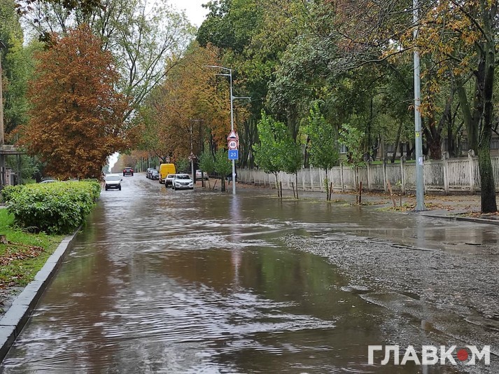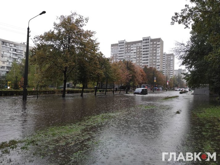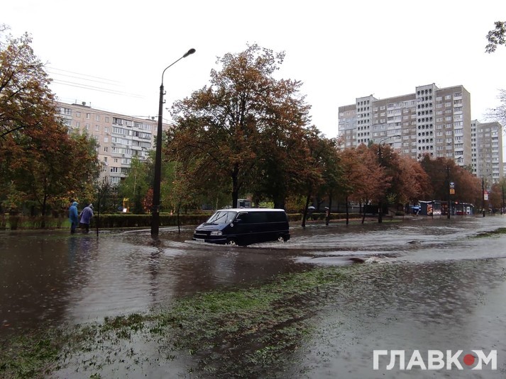 Це Теремки, вул. Лятошинського. Київські дороги знову перетворились на ріки. Машини перетворилися в човни.