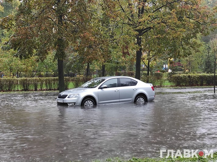 Фотографіями автівок, які мимоволі змушені були перетворитися на амфібії, прямуючи вулицями Києва, поділились кияни у соцмережах