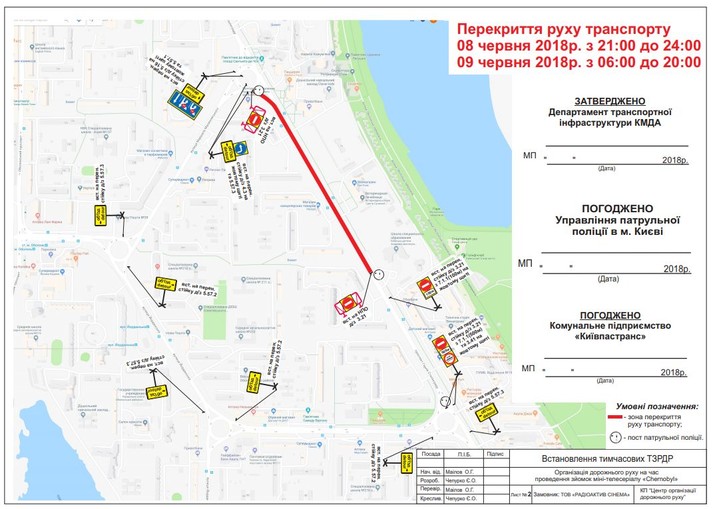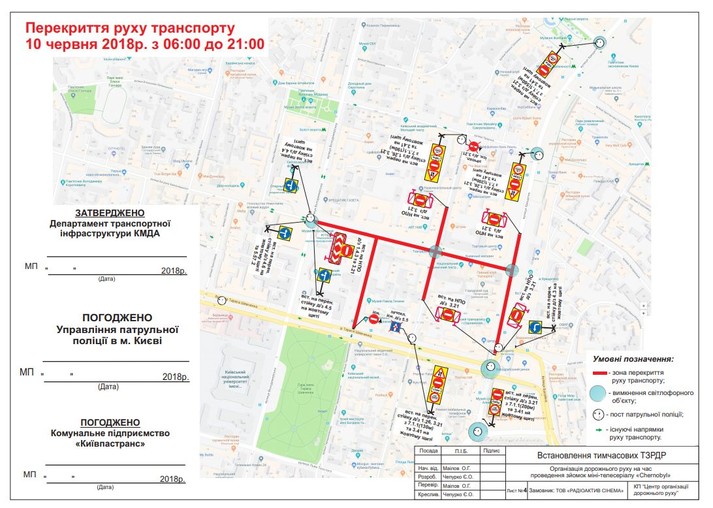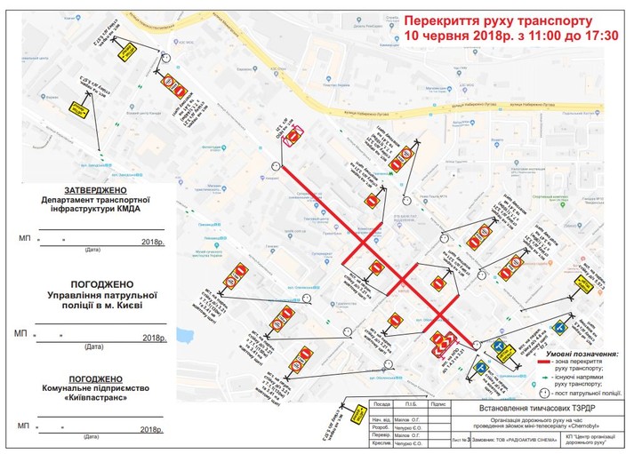 Із 8 до 10 червня на час зйомок епізодів міні-телесеріалу «Chernobyl», які проводить ТОВ «Р-Фільм», низкою вулиць Києва буде обмежено рух транспорту. Про це повідомили у Департаменті транспортної інфраструктури КМДА.