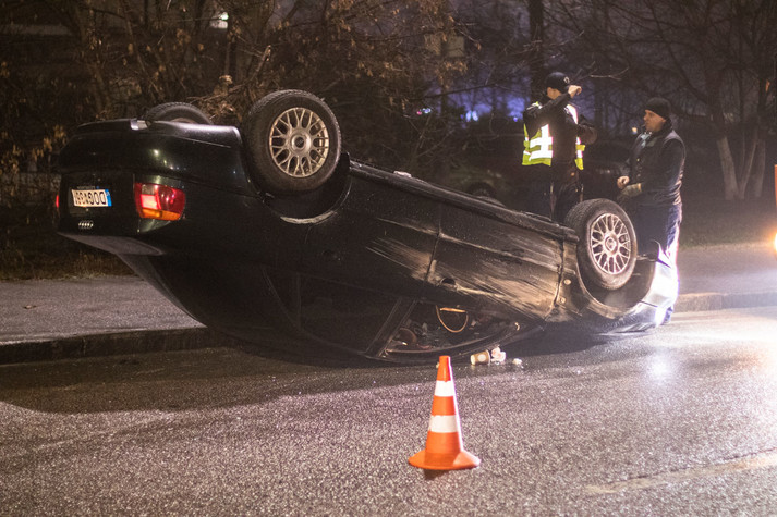 У ніч на середу, 20 листопада, в Києві на з'їзді з Кільцевої дороги на проспект Перемоги сталася ДТП з перекиданням. Автомобіль Audi A4 вилетів на смугу зустрічного руху та перекинувся.