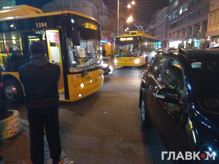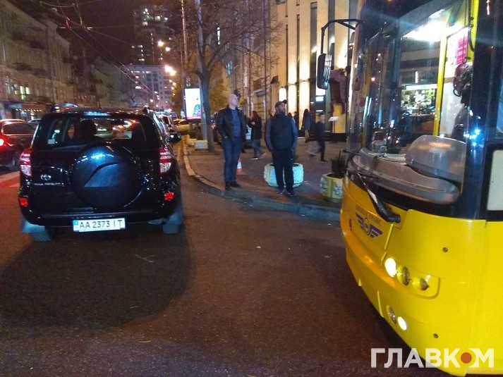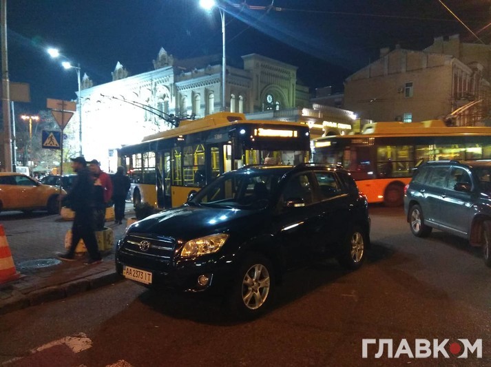 У середу, 7 листопада, на вулиці Шота Руставелі біля Палацу спорту у Києві автомобіль Toyota заблокував проїзд громадського транспорту. Про це повідомляє кореспондент «Главкома».