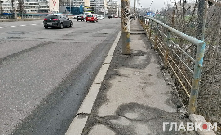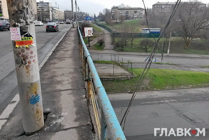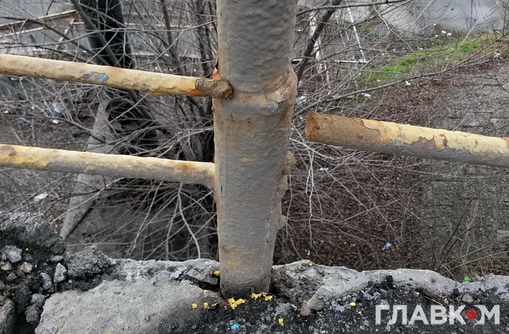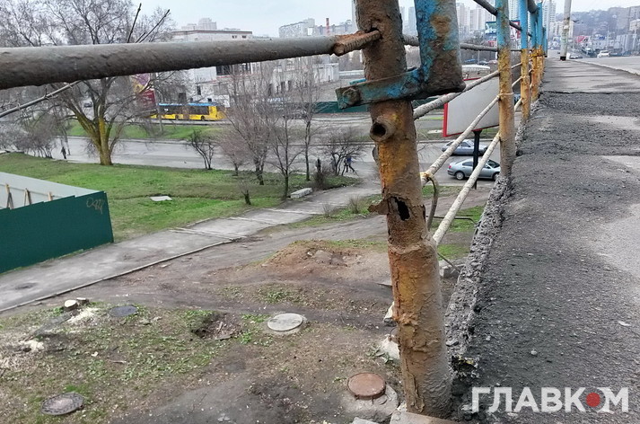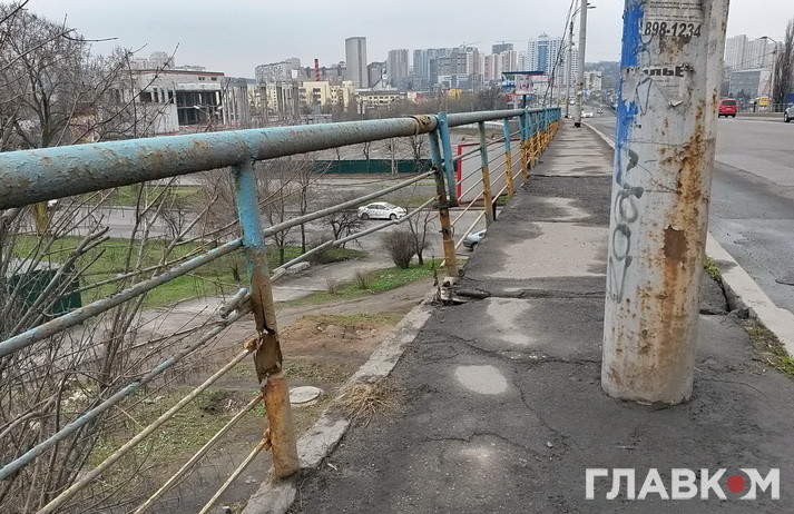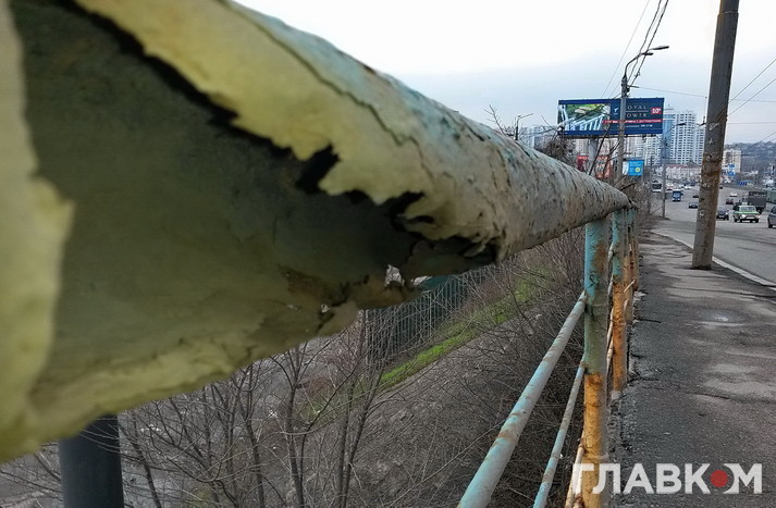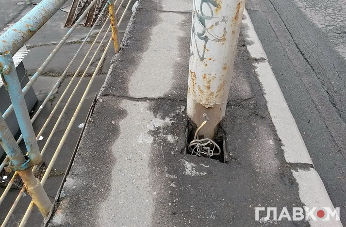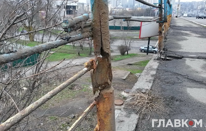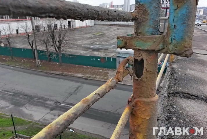 Але якщо пройти по мосту пішки, стає моторошно. Поручні тримаються на чесному слові. Деякі взагалі з’їла іржа: вони буквально висять у повітрі. До краю страшно підійти. На тротуарі тріщини, через які з низу пробивається денне світло. Рукою можна дотягнутися до дротів, які звисають зі стовпів.