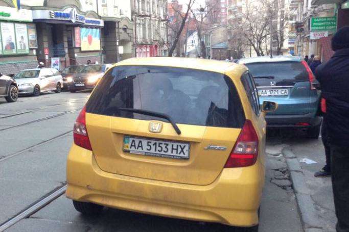 Власник автомобіля Honda залишив свою машину поруч з рейками, через що зупинилися трамваї та інший транспорт.