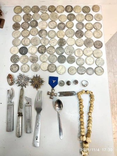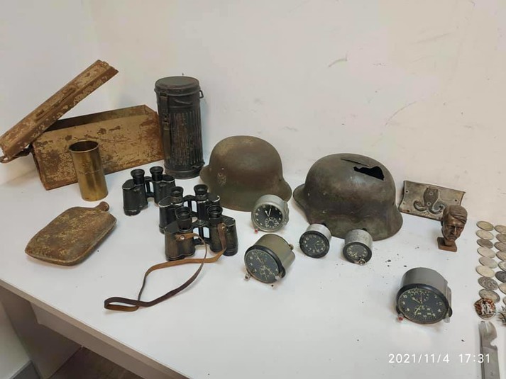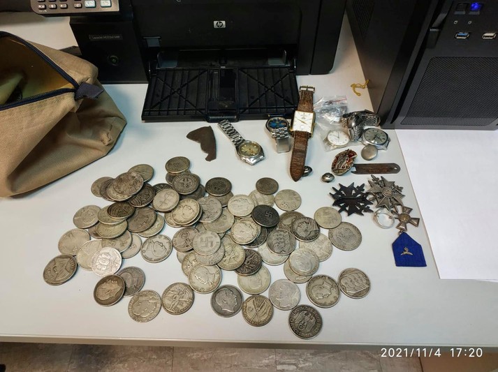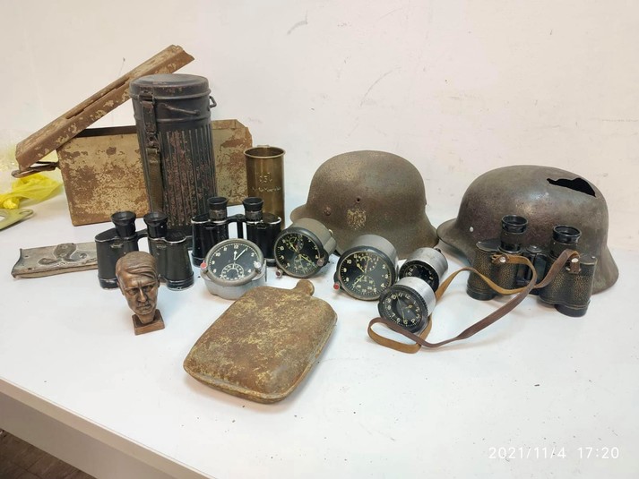 У валізі нашого 53-річного співвітчизника знаходилися каски, ложки, виделки, консервний ключ, 80 монет з білого металу, ґудзики, «газбак» (ємність для зберігання протигазу), фляги, біноклі, півлітрова маслянка, кістяне намисто з черепами, іспанські хрести (відзнака для німців, що брали участь у Громадянській війні в Іспанії 1936–1939 років), військові авіаційні годинники люфтваффе, скульптурна голова Гітлера тощо.