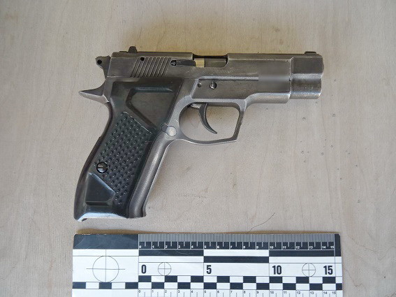 Під час поверхневого огляду поліцейські виявили у нього предмет, схожий на травматичний пістолет «Форт 12-Р», та дев’ять патронів для відстрілу гумовими кулями.