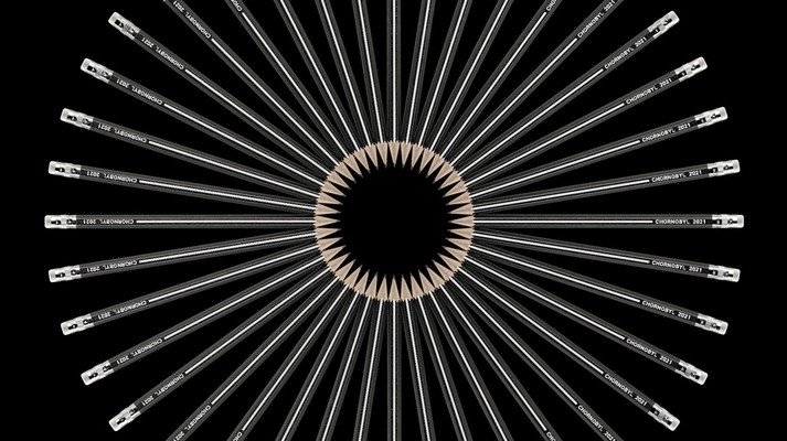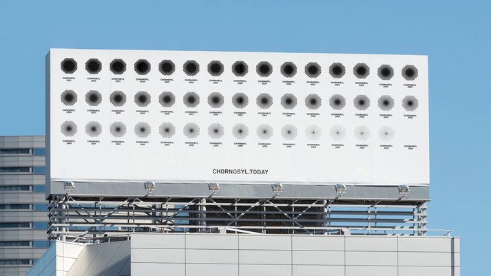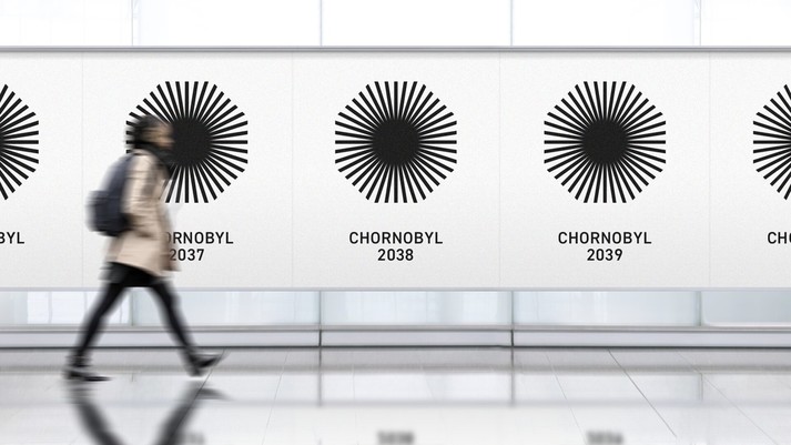 Це відправна точка існування лого, наче це логотип Чорнобиля’86. І з кожним роком зображення змінюється та поступово зникає. Кінцева точка існування лого – 2064 рік, коли Чорнобильську електростанцію буде повністю виведено з експлуатації.