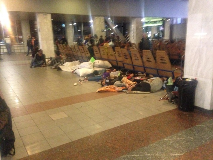 «Все загадили, всюди сморід. Сплять штабелями, прямо під ногами на підлозі. Діти бігають, смикають перехожих», - повідомив він і опублікував фото.