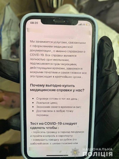 24-річний чоловік та 22-річна жінка створили чат-бот у месенджері, де приймали замовлення на виготовлення підробленої медичної документації. Без проходження лабораторних досліджень громадянам пропонували виготовлення ПЛР-тестів із негативним результатом на Covid-19, а також міжнародні свідоцтва про вакцинацію. ПЛР-тести продавали по 600 гривень, а свідоцтво про вакцинацію коштували 1200 гривень.