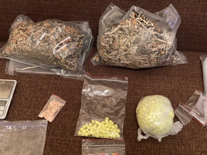 У ході проведення обшуків, зокрема, в орендованій підозрюваним квартирі, вилучено близько 4 кг заборонених засобів та речовин, серед них амфетамін, солі, мефедрон, марки, екстазі, а також психотропні гриби – у шоколадних цукерках та в чистому вигляді.