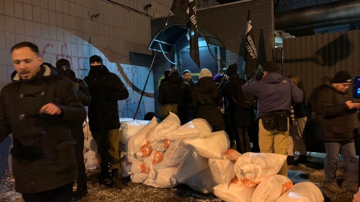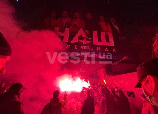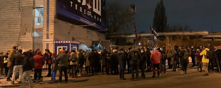 Увечері 2 лютого у Києві поблизу будівлі телеканалу «Наш», розташованій на вулиці Жилянській, розпочалась акція протесту. Учасники акції закидають каналу співпрацю із Росією та вимагають його закриття.