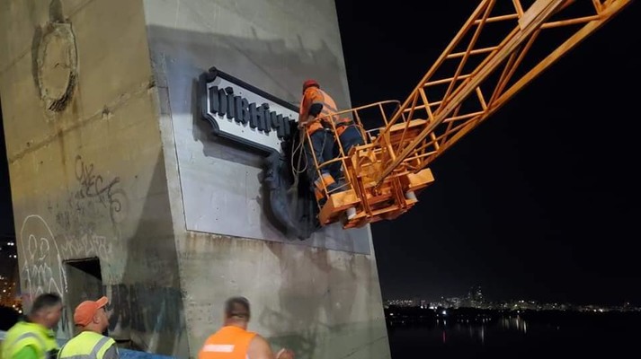 Нову вивіску на мосту комунальники встановили в ніч на 19 серпня.