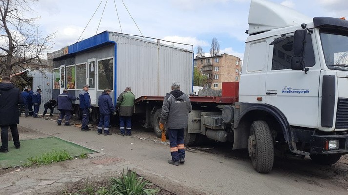 У Києві триває демонтаж тимчасових споруд без дозвільних документів на розміщення, що розташовані на проспекті Соборності у Дніпровському районі Києва. Станом на вечір 27 квітня, вже 24 незаконні МАФи переїхали на штрафмайданчики. Про це повідомляє комунальне підприємство «Київблагоустрій».