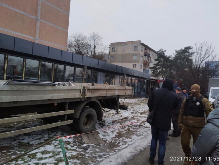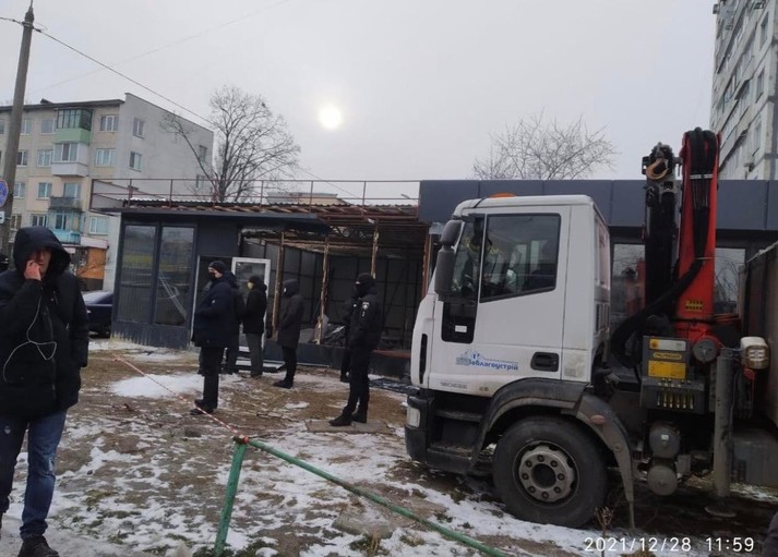 Але біля МАФа, окрім комунальників, з'явилися невідомі 20 чоловік, які перешкоджають демонтажу. Про це повідомляється в телеграм-каналі «Основа майбутнього».
