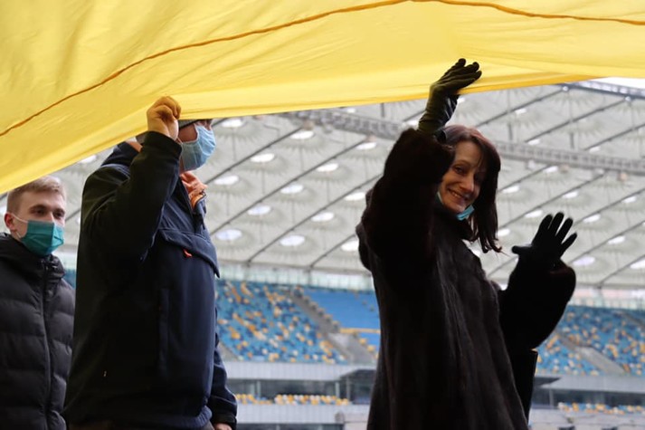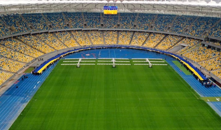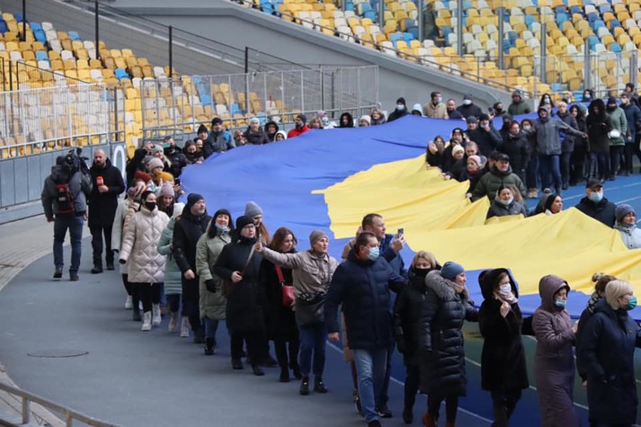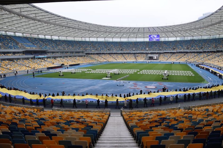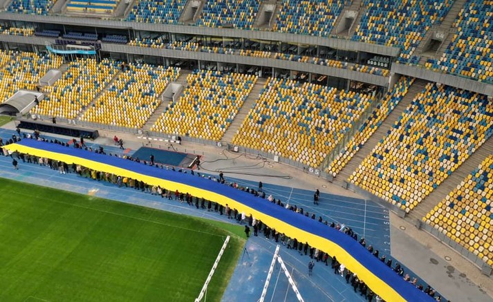 На НСК «Олімпійський» в столиці до Дня єднання розгорнули 200-метровий Державний Прапор України.