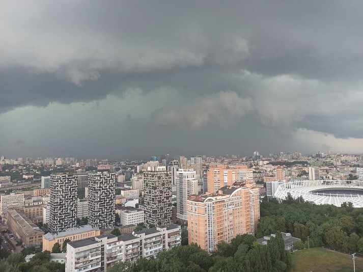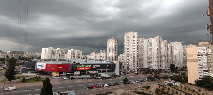 Небо у місті стало чорним, як вночі. Здійнявся сильний вітер, шквали до 15-20 м/с.