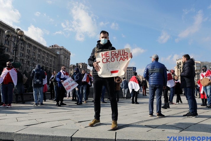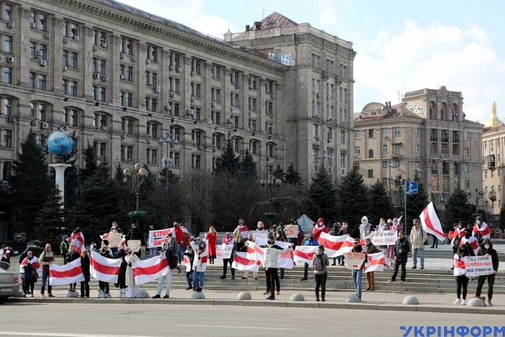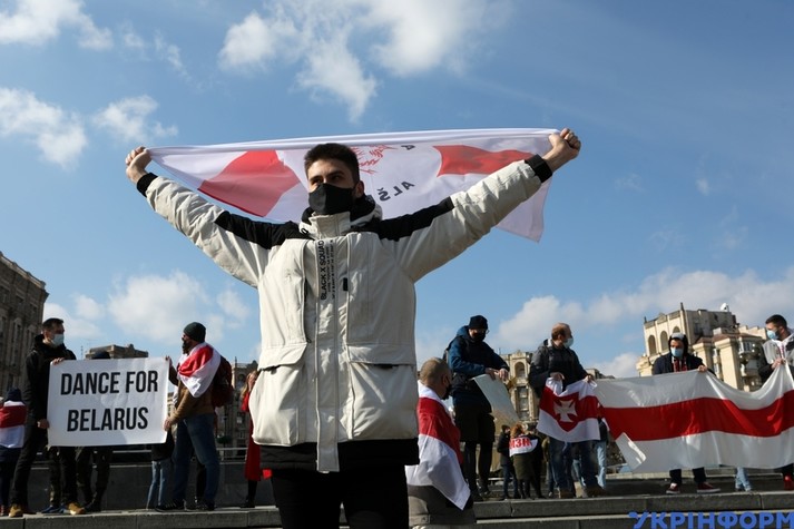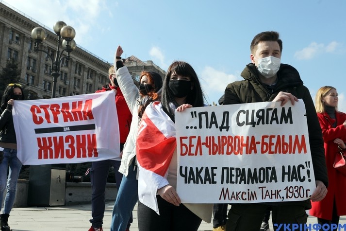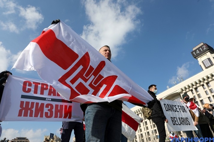 Представники білоруської громади в Україні та небайдужі українці провели у неділю в центрі Києва акцію солідарності з білоруським народом з нагоди річниці проголошення Білоруської народної республіки (День волі).