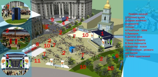 Так, відповідно до підписаного розпорядження КМДА, у суботу, 21 травня о 12:00 старт загальноміським заходам дасть офіційна церемонія відкриття Дня Європи за участю керівництва держави та міста, голови Представництва ЄС в Україні, представників посольств країн-членів ЄС, акредитованих в Україні, ЗМІ та громадськості.