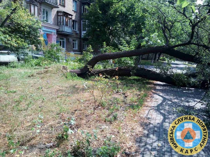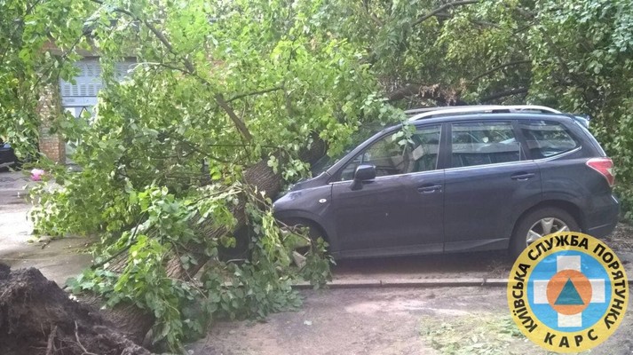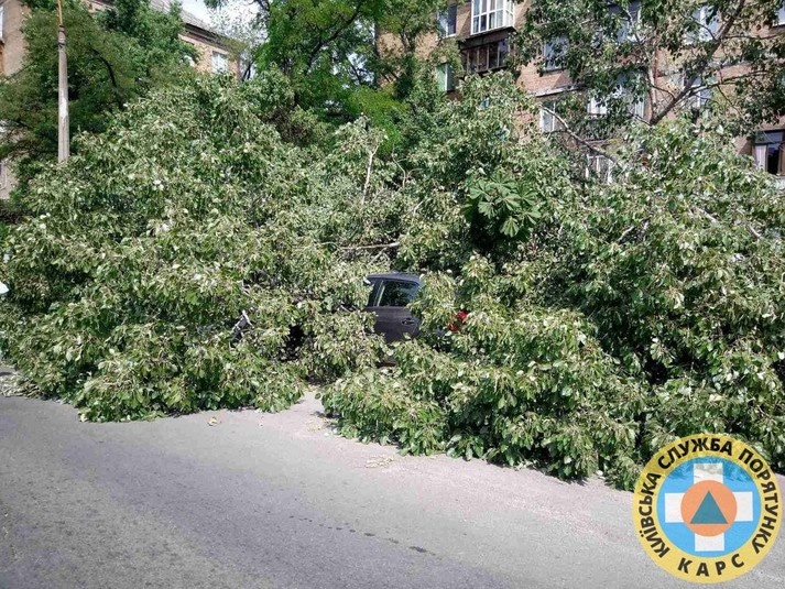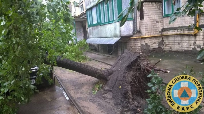 Як повідомлялося, у Києві нічна гроза повалила дерево на багатоповерхівку.