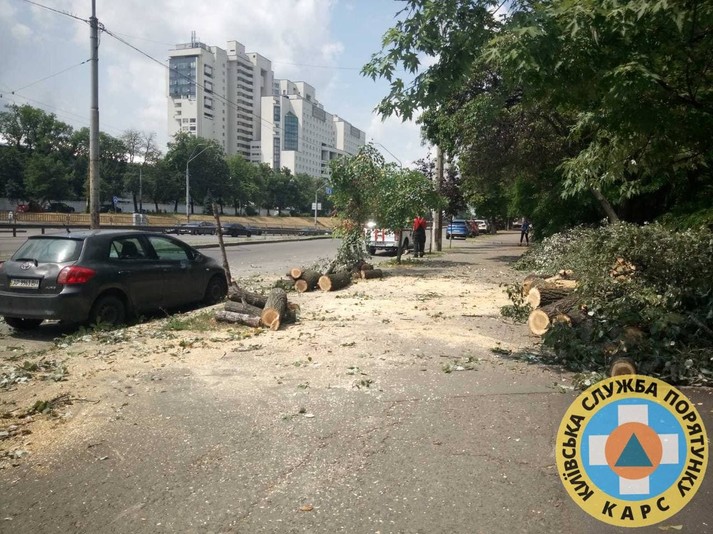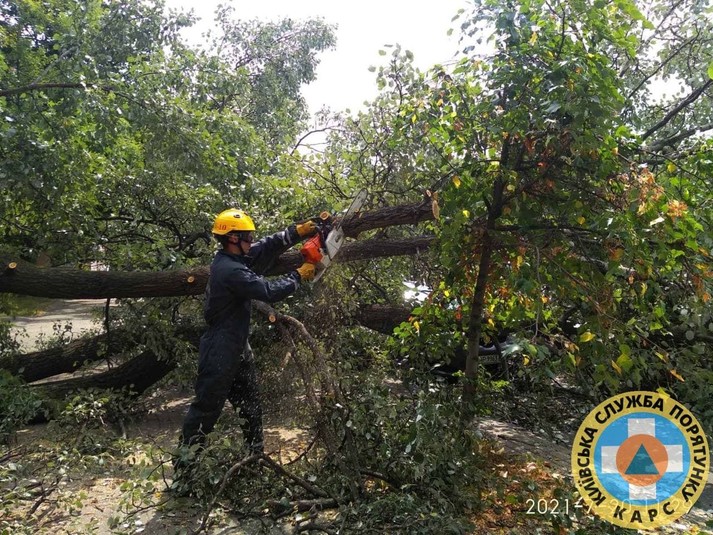 Дерева повивертало з корінням: київські рятувальники ліквідовують наслідки негоди (фото)
