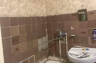Ванна кімната потребує оновлення плитки та змішувача, так само, як і кухня, в якій розташовані лише кілька столів та газова плита.