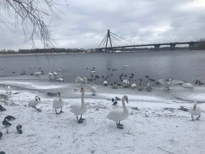 До затоки Дніпра у парк «Наталка», що в Києві, прилетіло понад 30 лебедів. Птахи обрали столичний берег для зимування. Про це повідомляє спільнота «Оболонський район Києва» у Facebook.