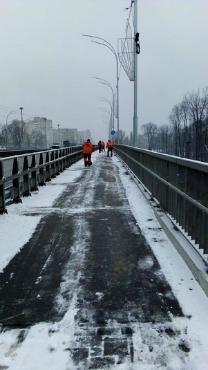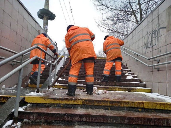 Наразі збільшено кількість бригад з ручного прибирання до 73. 524 працівники очищають і обробляють зупинки громадського транспорту, вузькі пішохідні переходи, спуски у підземні пішохідні переходи та сходи.