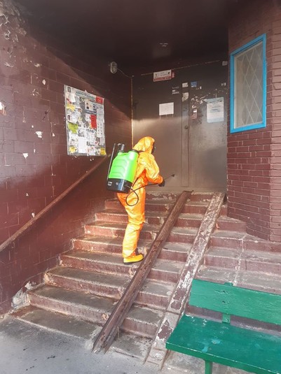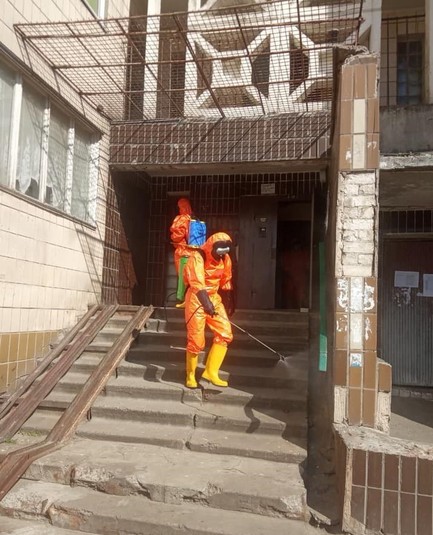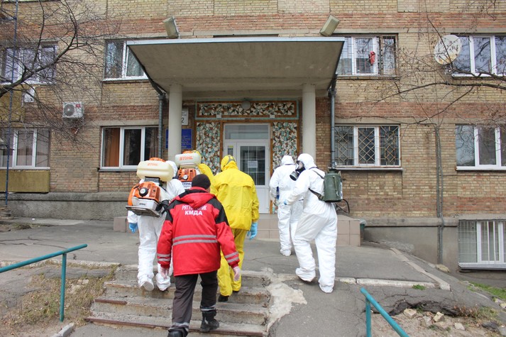Головне управління ДСНС у Києві повідомляє, що такі заходи проводяться лише за наданими адресами від штабу з ліквідації наслідків надзвичайної ситуації Київської міської державної адміністрації. Рятувальники дезінфікують лише під'їзди, сходові клітини, ліфтові шахти, оглядові майданчики будинку, а також вхідні двері квартир та не заходять у помешкання.