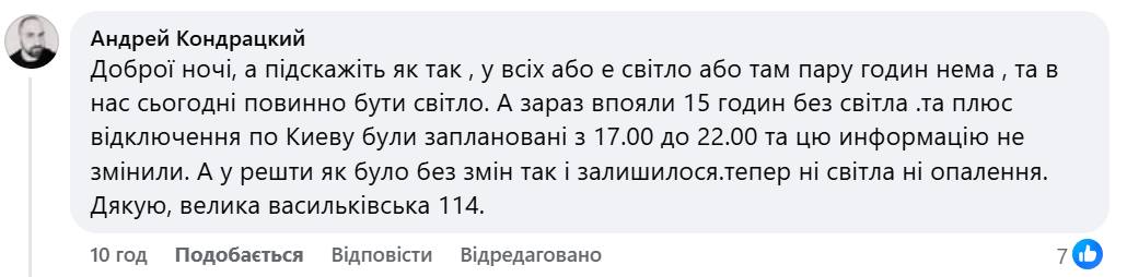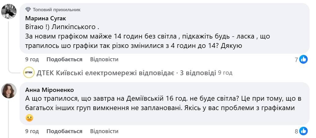 За інформацією мешканців, «темні» графіки на понад 14 годин отримали адреси, що живляться від проблемного енерговузла: