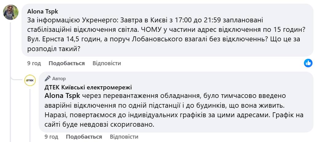 В енергокомпанії запевняють, що ситуацію вже стабілізовано. Наразі триває процес переходу від аварійних обмежень назад до індивідуальних графіків.