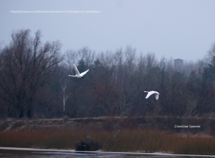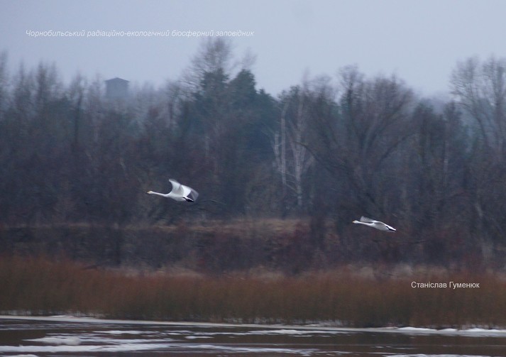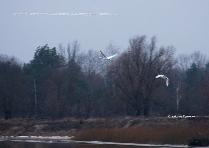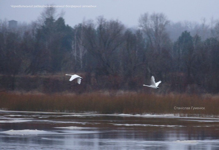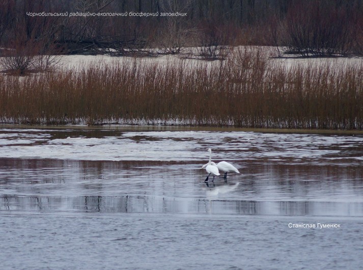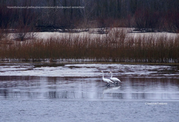 Після сильних морозі на водоймах Чорнобильського радіаційно-екологічного біосферного заповідника з'явилися лебеді.