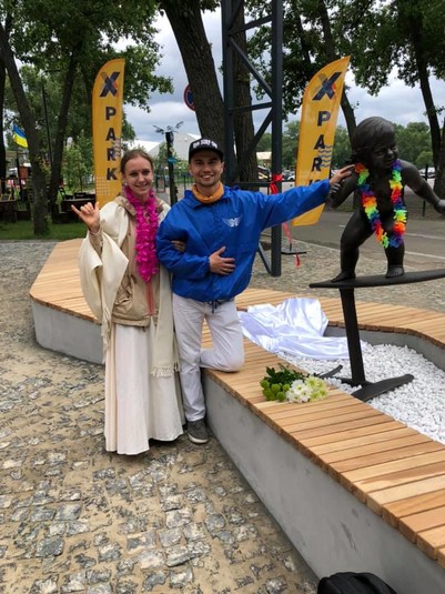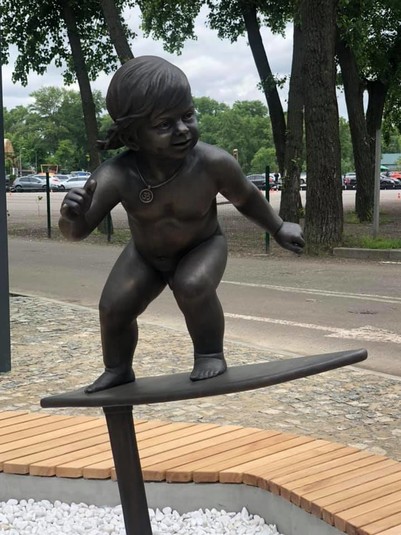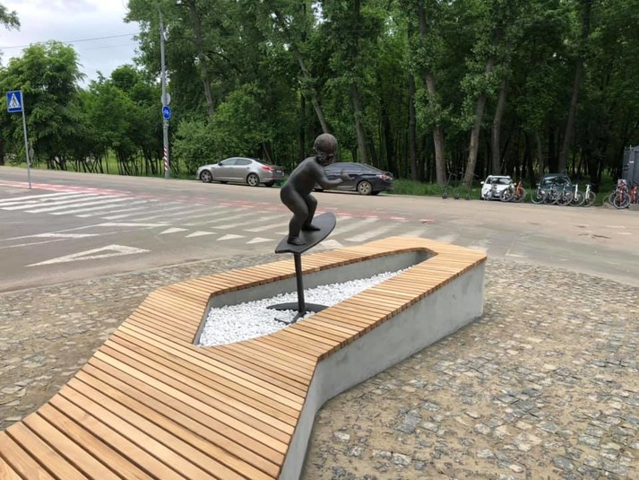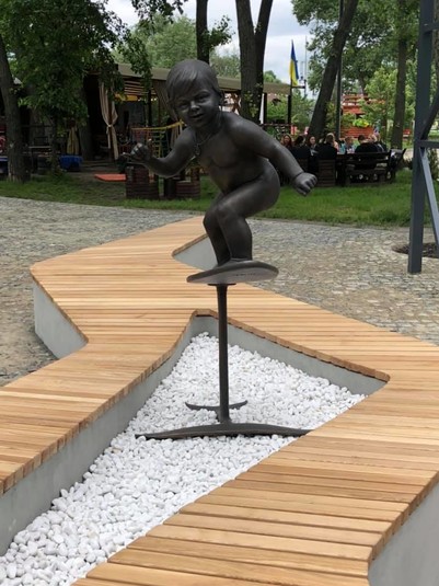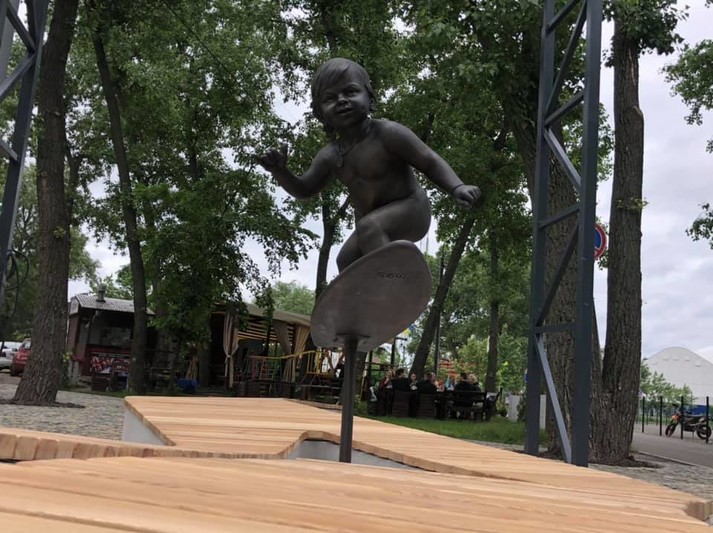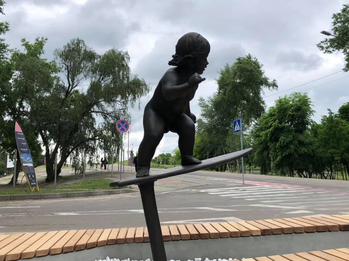 30 травня, В День Києва, на в’їзді в екстрім-парк «Xpark» на острові Муромець відкрили нову скульптурну композицію «Малюк-серфер – Зозулька».