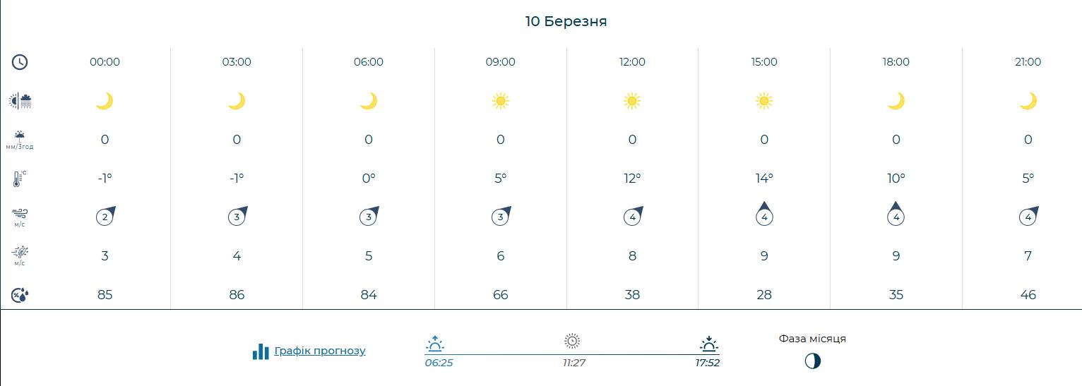 - У середу, 11 березня, очікується сонячний день із температурою до +13°, вночі – близько +1°.
