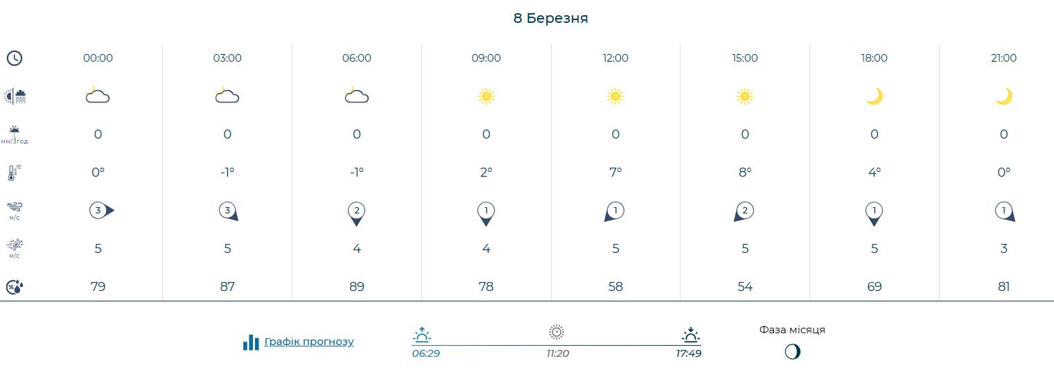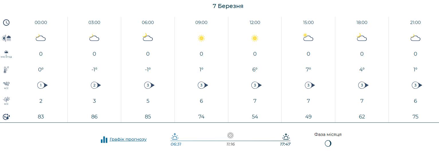 Протягом суботи та неділі, 7 і 8 березня, повітря прогріється до +5°...+7°. Приємним бонусом для мешканців міста стане відсутність опадів – суха погода триматиметься щонайменше до кінця наступного тижня.