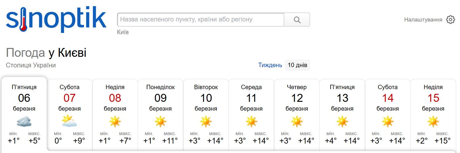 Варто зауважити, що деякі погодні ресурси дають ще більш оптимістичні прогнози. Зокрема, сайт sinoptik.ua обіцяє киянам найближчі десять днів без «мінусів» навіть уночі. За цими даними, справжнє тепло чекає на місто у неділю, 15 березня, коли стовпчики термометрів можуть сягнути позначки +15°.