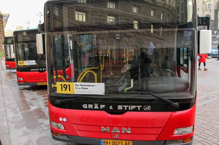 «Першу партію хоч і вживаних, але добротних автобусів MAN сьогодні вночі привіз перевізник із півдня України... Загалом за результатами конкурсу 29 таких великогабаритних, повнорозмірних і низькопідлогових машин уже в січні замінять усі старі та іржаві «Богдани» на 191-му, 417-му та на 573-му маршрутах Києва», – зазначив Усов.