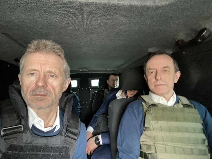 Мілош Вистрчіл та Томаш Гродський відвідають села в околицях стлиці, які були суттєво пошкоджені російським агресором