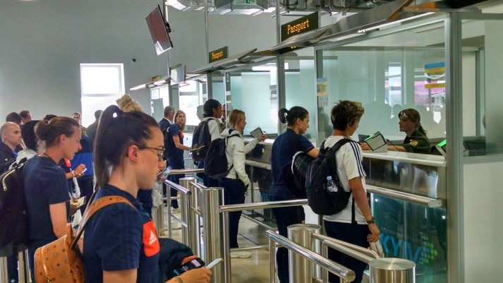 Французький «Ліон» прибув сьогодні в аеропорт «Київ» (Жуляни), а команду з Німеччини «Вольфсбург» прикордонники зустріли учора надвечір в аеропорту «Бориспіль»