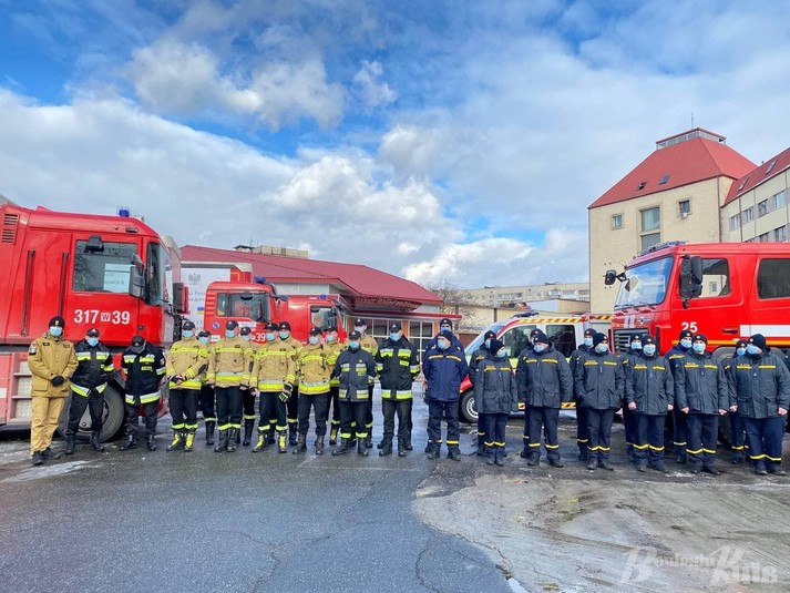 Вдень вантажівки з гуманітаркою прибули й на територію 25-ї пожежно-рятувальної частини Києва, що на вулиці Маршала Малиновського. Саме до цієї частини під’їхали шість автівок, решту попрямували до інших підрозділів ДСНС. Згодом, як повідомили на місці, гуманітарну допомогу розділять між закладами.