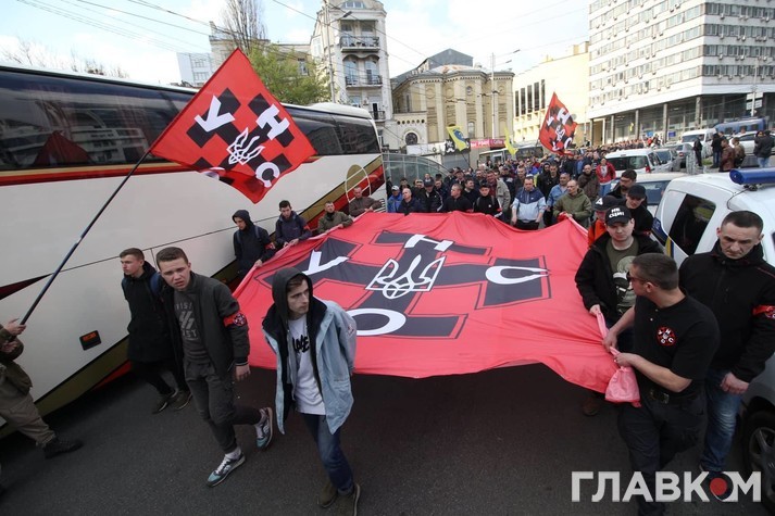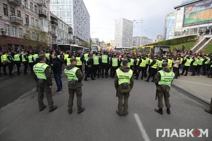 З Михайлівської площі колона вирушила до НСК «Олімпійський», де о 19:00 мають відбутися дебати між кандидатами у президенти Петром Порошенком і Володимиром Зеленським.
