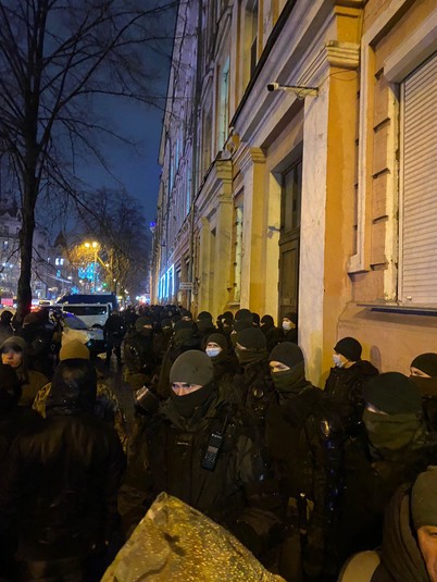 Доки суддя Печерського райсуду Києва Олексій Соколов пішов до нарадчої кімнати, щоб обрати запобіжний захід п’ятому президенту і лідеру опозиції Петру Порошенку, до будівлі суду почали стягувати добре екіпірованих силовиків. Про це повідомляють народні депутати фракції «Європейська солідарність».