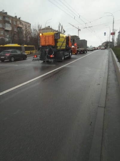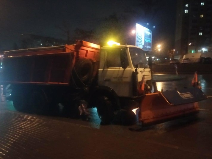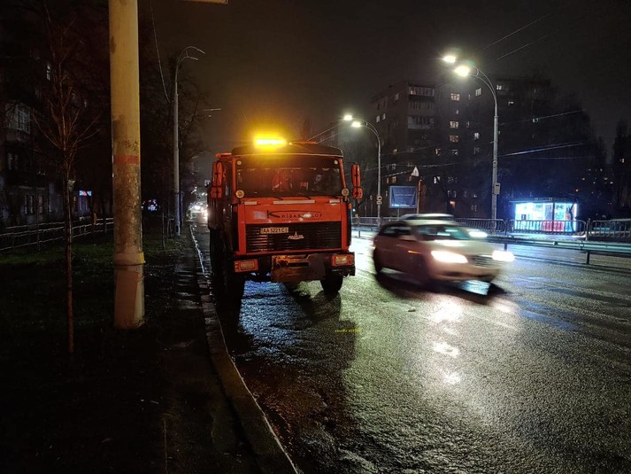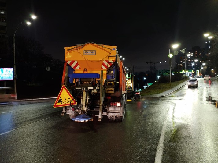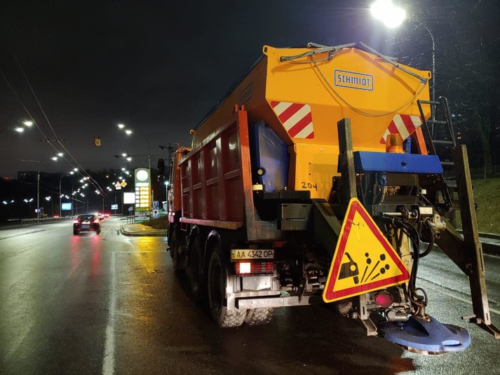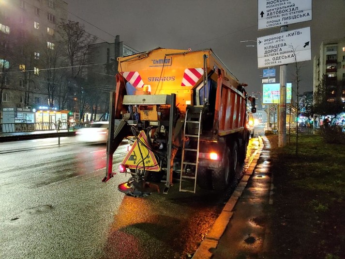 Вулиці Києва обробляють спеціальним розчином, щоб не утворювалась ожеледь на дорогах
