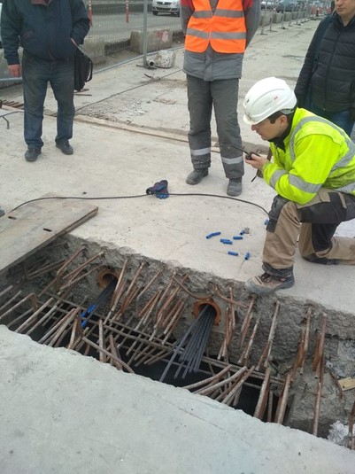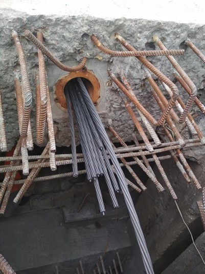 Попередньо дорожниками були влаштовані бетонні діафрагми, через які сьогодні і заводяться пучки арматури.