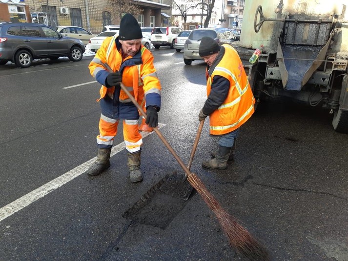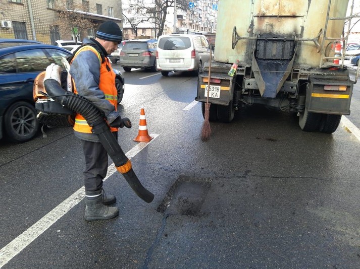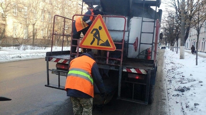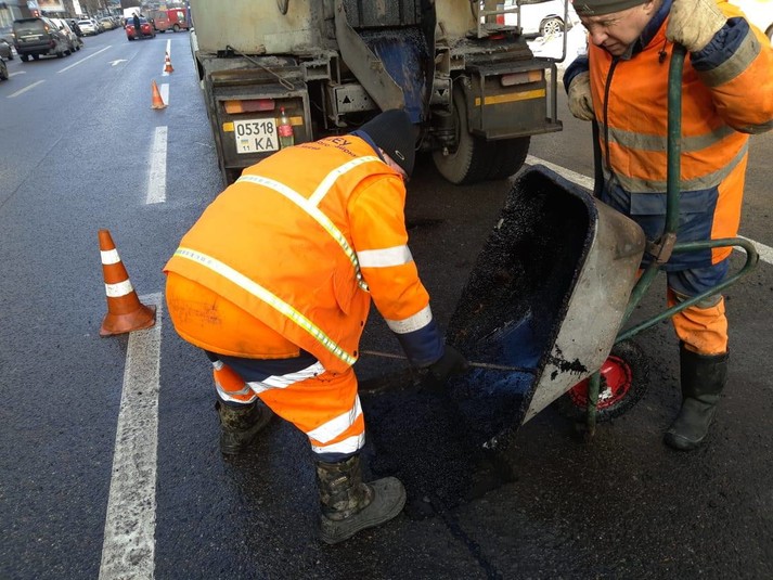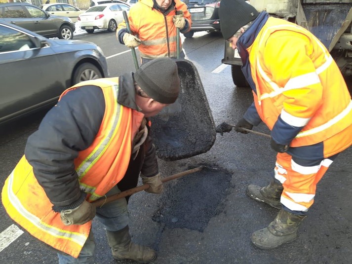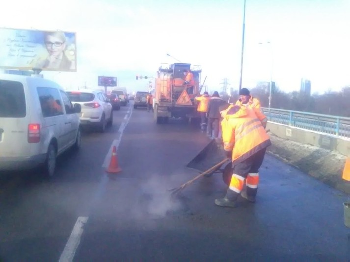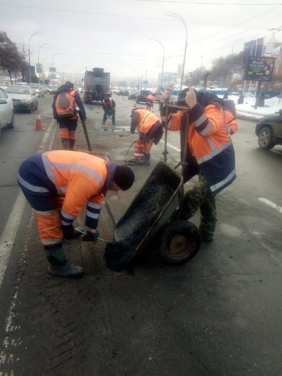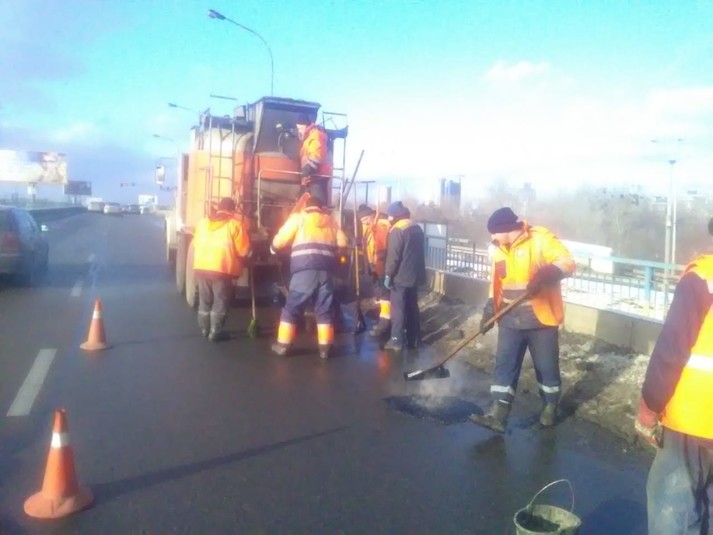 Взимку дорожники для забезпечення безпечного проїзду автотранспорту виконують роботи з ліквідації аварійно-небезпечних руйнувань дорожнього покриття. Про це повідомляє комунальна корпорація «Київавтодор».