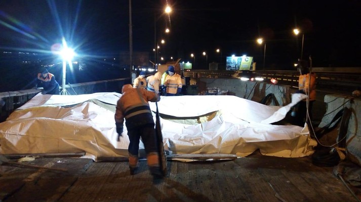 «Позмінно чотири бригади дорожників працюють на цьому об’єкті, роботи виконуються як на проїзній частині мостового переходу, так і під нею», - інформують у «Київавтодорі».