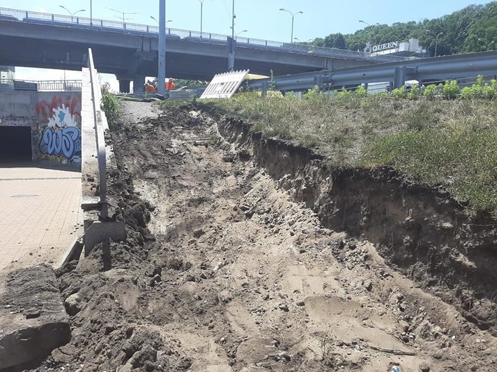 Робітники комунальної корпорації «Київавтодор» почали підготовчі роботи з влаштування основи для створення велосипедно-пішохідного пандусу для організації більш зручного сполучення мосту Метро та тротуару вздовж набережної Дніпра, що веде до Поштової площі. Роботи плануються завершити протягом двох тижнів – до 13 липня.