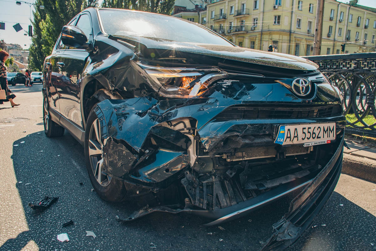 По бульвару Шевченка з боку вулиці Хрещатик в середньому ряду рухалася Toyota Rav 4. По вулиці Терещенківській в сторону вулиці Антоновича рухався автомобіль Lada (ВАЗ 2112). Зіткнення сталося на перехресті. ВАЗ вдарив Toyota в ліву передню частину.