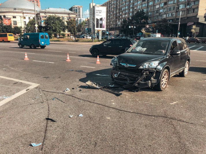 У вівторок, 5 червня, в Києві на площі Перемоги сталася ДТП: дорогу не поділили Honda і Seat. Через це одна з машин виявилася на клумбі.