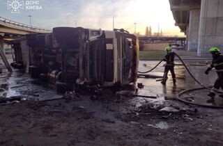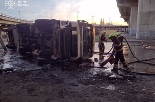 Рятувальники деблокували водія з вантажівки, яка злетіла з Південного мосту