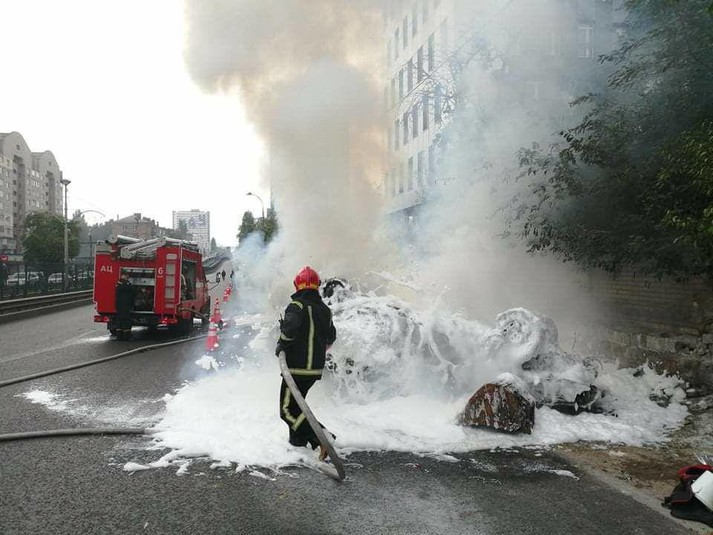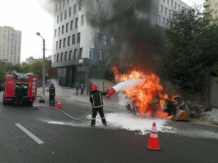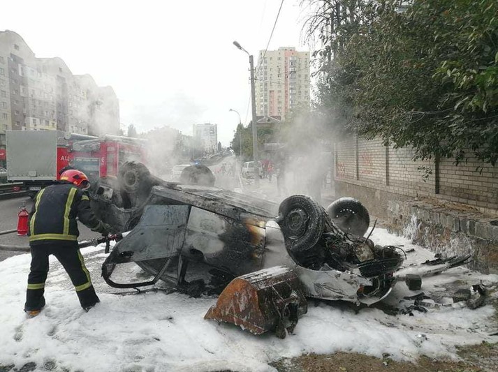 ДТП у Києві: автомобіль після зіткнення перекинувся й загорівся (фото, відео)