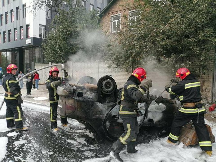 Бійці встановили, що внаслідок зіткнення автомобіль Daewoo Lanos перекинувся і зайнявся.